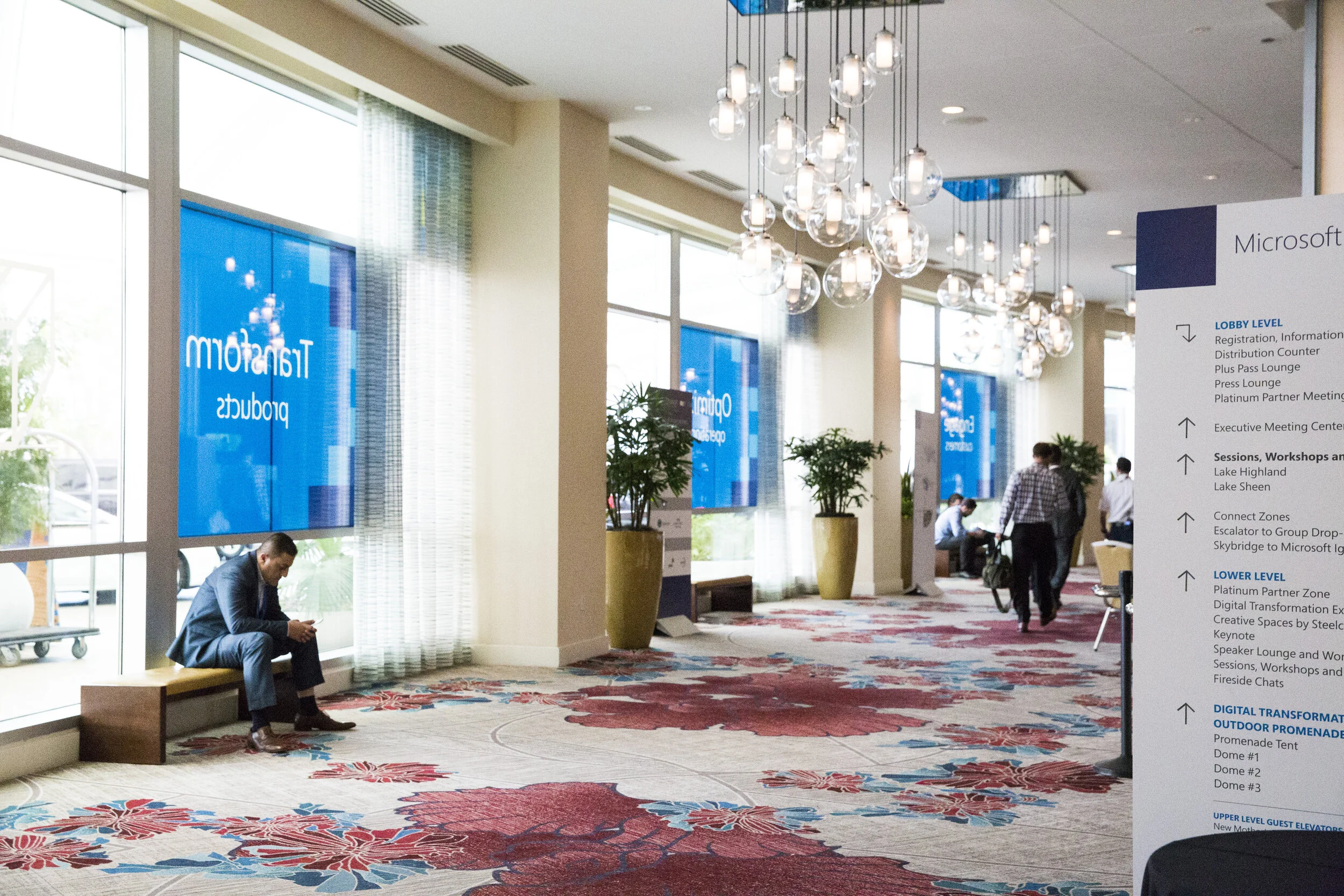 Microsoft Envision is an exclusive, invitation-only event for thought leaders from around the world. It ran in tandem with the larger Ignite event. The challenge for Linda as the design lead was to transform the Orlando Hilton Convention Center into the Microsoft brand so that attendees would feel immersed and pampered. Working with her Sparks team to create engaging spaces both inside and out. Turning glass windows into Microsoft windows, nooks and crannies into Microsoft lounges and tucking the brand into places in a way that felt native to the space—so that people could “live” Microsoft in a real but unobtrusive way.